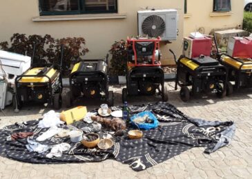 Items recovered from them include three cars, eight power generating sets, one Hisense air conditioner, two power stabilizers, 10 motorcycles, eight laptop computers, four bluetooth speakers and 60 android phones.