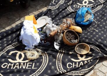 Also recovered were fetish items that included three calabashes, adorned with feathers, traditionally made soap and sponge, a bottle of hot drink, 20 cowries, a waist bead and four lady’s underwears.