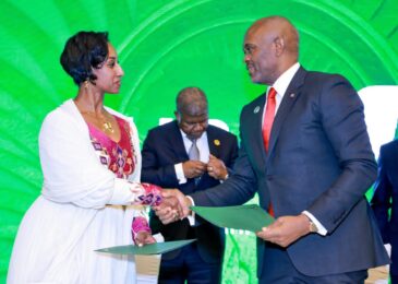 Director of the Peace Fund Secretariat, African Union, Dagmawit Moges Bekele and Group Chairman, United Bank for Africa(UBA), during the signing ceremony of agreement for the landmark donation of $500,000 to the African Union (AU) Peace Fund in Addis Ababa, Ethiopia at the weekend.